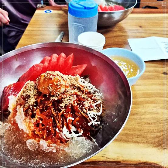 살짝 배부른 상태로 간 거였는데도 수박냉면이 끝없이 들어가더군요! 추가 주문해서 더 먹었어요 ㅋㅋㅋㅋ 수박냉면 그냥 수박냉면이였는데 개인적으로 물냉면, 비빔냉면가 정말 맛있더라구요!!! 다음에는 부모님도 모시고 와봐야겠어요 굿굿