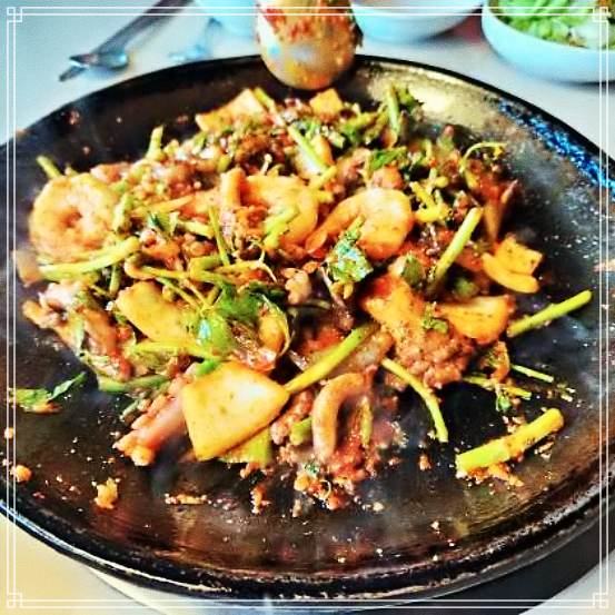 37년 전통 미나리 해물볶음 나오자마자 정신없이 먹다가 정신 차리고 사진을 찍음! 히힛~ 37년 전통 미나리 해물볶음 넘 맛있어영!!!! 산낙지 불고기도 맛있드라규영!!!!!! 테이블 서빙 해주시는 분도 넘흐 친절하시그영!!!!! 아주 잘먹고 가영!!!!♡-♡