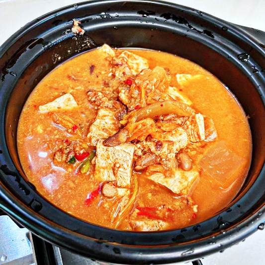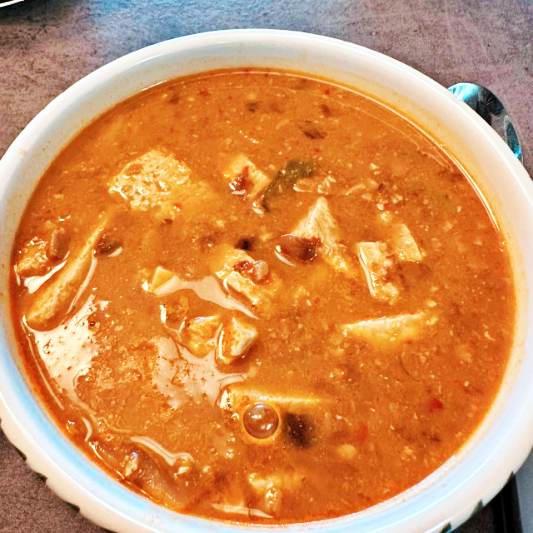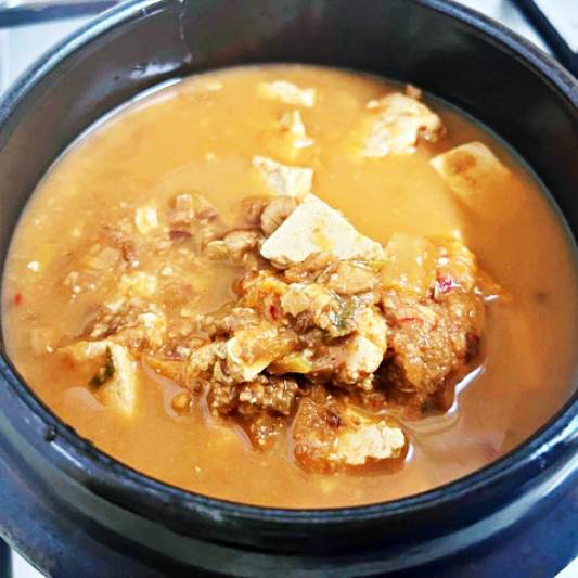 순두부찌개와 함께 제공되는 청국장찌개은 신선하고 부드러웠으며, 양념은 강하지도 약하지도 않았습니다. 청국장찌개의 양도 적당했으며, 가격도 합리적이었습니다.