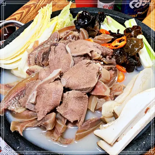마포옥에서는 차돌 수육을 넉넉하게 얹어주는 차돌탕도 추천한다. 차돌탕은 차돌박이를 삶아서 만든 수육으로, 설렁탕과 비슷하지만 고기가 더 많고 부드럽다. 차돌탕은 소금과 고춧가루로 간을 하며, 고기와 함께 먹으면 입안이 촉촉해진다. 🍲