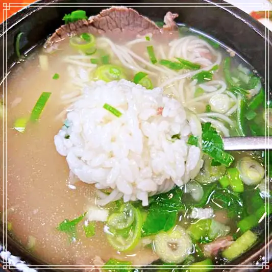 마포옥의 설렁탕을 더욱 맛있게 먹는 방법은 바로 국밥이다. 국밥은 국물에 밥을 토렴해 내는 것으로, 이 집의 특징인데, 무엇보다 소고기 국물의 고소한 감칠맛과 달달한 밥의 조화가 일품이다. 밥과 함께 먹으면 배가 부르고 영양도 좋다. 🍚