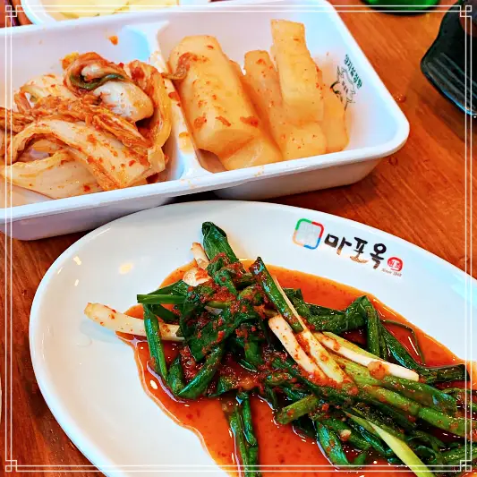 마포옥에서는 설렁탕과 함께 다양한 반찬도 제공한다. 배추 겉절이, 파김치, 깍두기 등 다양한 김치를 곁들여 먹으면 입맛이 살아난다. 김치는 소고기와 잘 어울리며, 신맛과 매운맛으로 국물의 담백함을 보완해준다. 🌶